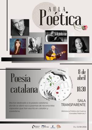 El Aula Poética inaugura un nuevo ciclo de recitales con una sesión dedicada a la poesía catalana, que tendrá lugar el próximo miércoles 8 de abril en la Sala Transparente de la Biblioteca Pública del Estado.