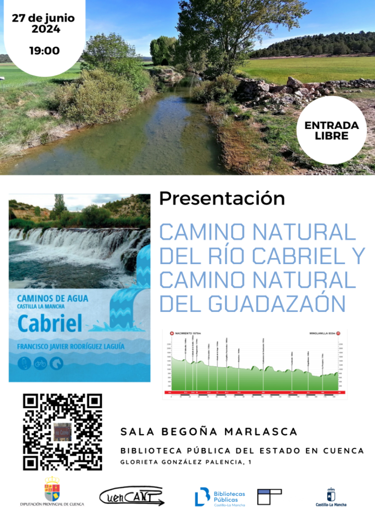 El jueves 27 de junio a las 19 horas tendrá lugar la presentación de los Caminos Naturales del Río Cabriel y el Río Guadazaón. Será en la sala Begoña Marlasca de la Biblioteca Pública del Estado de Cuenca (Glorieta González Palencia, 1)