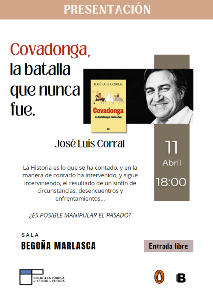 La Sala Begoña Marlasca de la Biblioteca Pública del Estado en Cuenca “Fermín Caballero” acoge, el próximo jueves 11 de abril, la presentación de ‘Covadonga, la batalla que nunca fue’ de José Luis Corral.