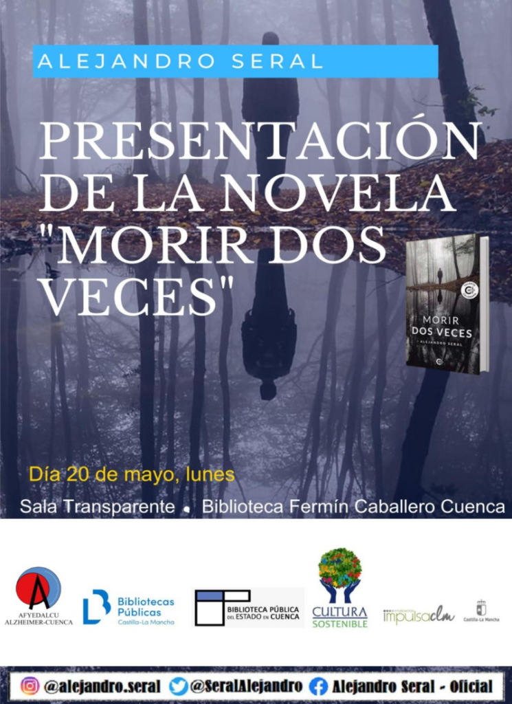 Organizada por la Fundación de Alzheimer de Cuenca llega a la Sala Transparente de la Biblioteca Pública del Estado “Fermín Caballero” de Cuenca ,el lunes 20 de mayo, la presentación del libro ‘Morir dos veces’ de Alejandro Seral. El alzhéimer es el tema principal de la novela, una obra que se basó en sus recuerdos y en cómo afrontó el desarrollo de esta enfermedad en su padre.