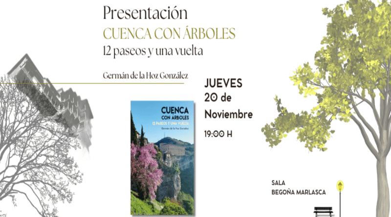La Biblioteca Pública del Estado “Fermín Caballero” acogerá el próximo jueves, 20 de noviembre de 2025, a las 19:00 h, la presentación del libro Cuenca con árboles: 12 paseos y una vuelta, escrito por el maestro y naturalista conquense Germán de la Hoz González. El acto tendrá lugar en la Sala Begoña Marlasca, con entrada libre hasta completar aforo.