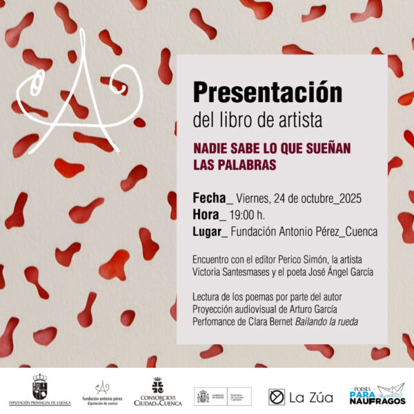 El viernes 24 de octubre a las 19:00h, la Fundación Antonio Pérez de Cuenca acoge la presentación del libro de artista, NADIE SABE LO QUE SUEÑAN LAS PALABRAS, editado por La Zúa Ediciones.