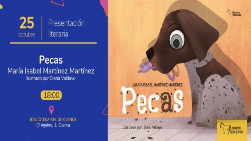 El próximo viernes 25 de octubre a las 18:00h, la Sala infantil de la Biblioteca Pública Municipal de Cuenca del Centro Cultural Aguirre será el escenario de la presentación del libro Pecas, escrito por María Isabel Martínez Martínez e ilustrado por Diana Valdayo. Este relato es el primero de una saga que, a través de la llegada de una mascota a una familia, aborda con sensibilidad temas universales como la adaptación a nuevas circunstancias y la importancia de los valores esenciales.