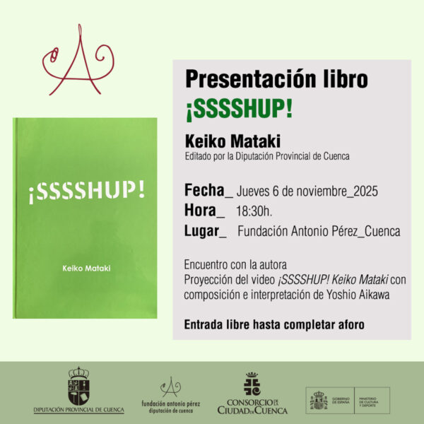 El próximo jueves 6 de noviembre de 2025, a las 18:30 horas, la Fundación Antonio Pérez (FAP) acogerá en su sede de Cuenca la presentación del libro ¡SSSSHUP! de la artista Keiko Mataki, editado por el Servicio de Publicaciones de la Diputación Provincial de Cuenca.
