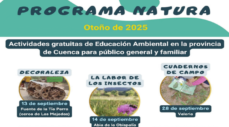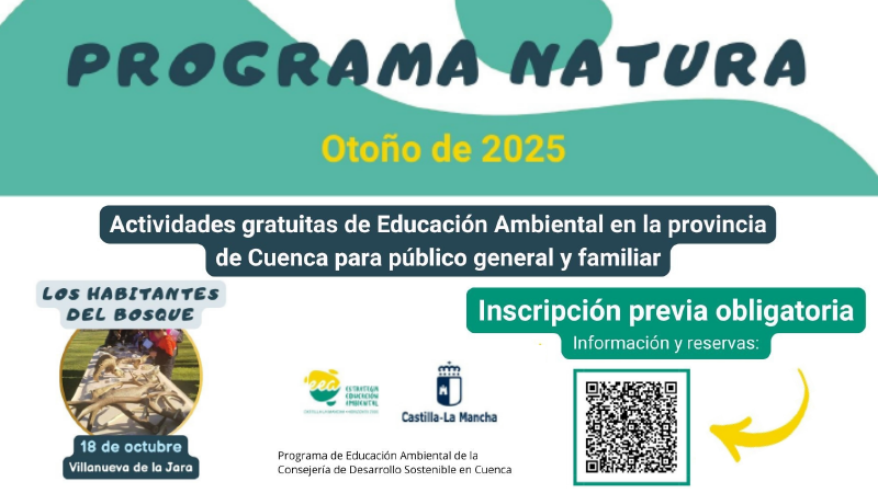 El Programa Natura abre su calendario de actividades de otoño 2025 en la provincia de Cuenca, una propuesta gratuita de ecoturismo y educación ambiental que invita a descubrir el patrimonio natural y etnográfico conquense a través de rutas interpretativas y talleres creativos.