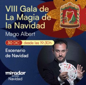 Espectáculo gratuito en el que la magia y la ilusión del Mago Albert llenan el escenario con números pensados para todas las edades, enmarcado dentro del programa Escenario de Navidad.