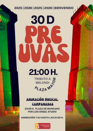 La Plaza Mayor acoge una nueva edición de las Preuvas, con un concierto tributo a Melendi que animará la noche previa al final de año en un ambiente festivo y participativo.