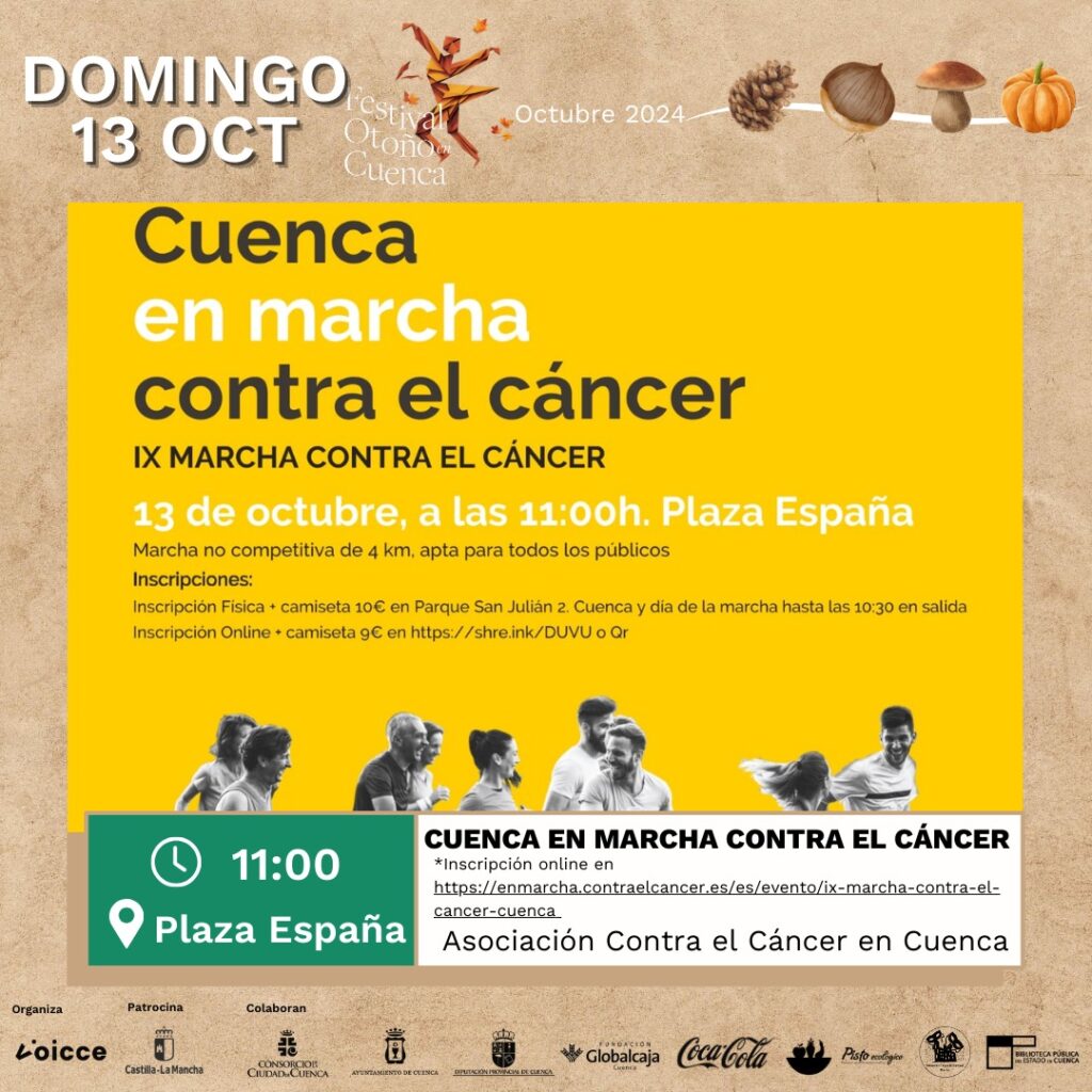 11:00: Cuenca en Marcha Contra el Cáncer – organizado por la Asociación Contra el Cáncer de Cuenca.