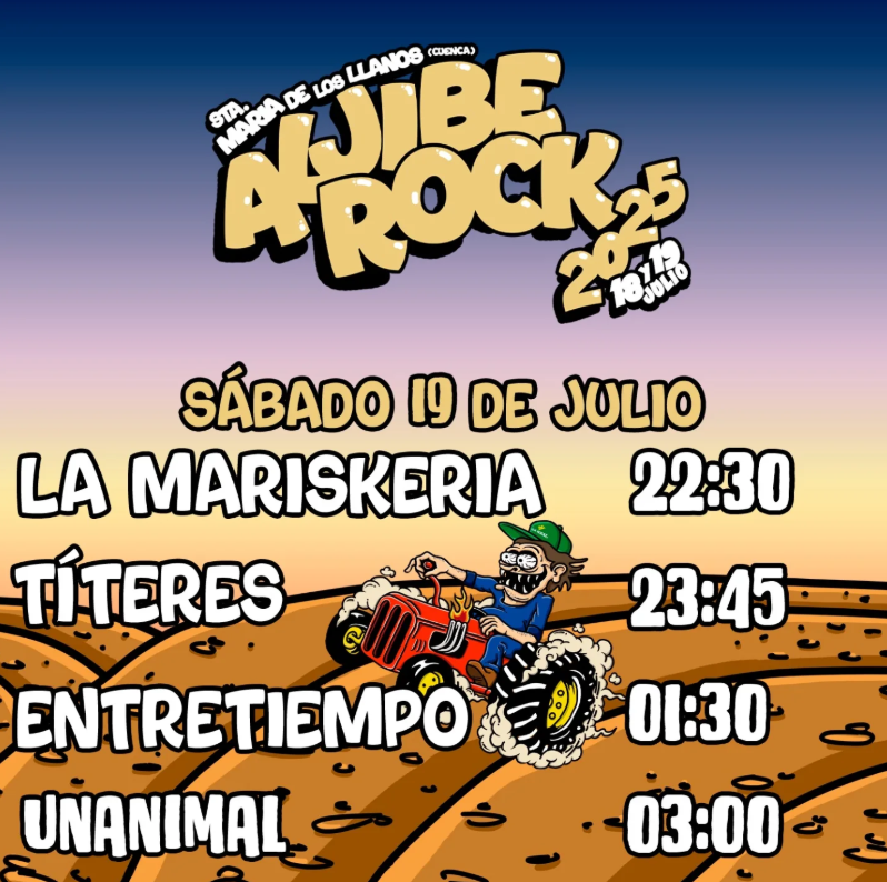 Los próximos 18 y 19 de julio de 2025, la localidad de Santa María de los Llanos (Cuenca) será el epicentro de la música alternativa con una nueva edición del festival autogestionado ALJIBE ROCK 2025, organizado por la Asociación Cultural Pozo lo Ancho.