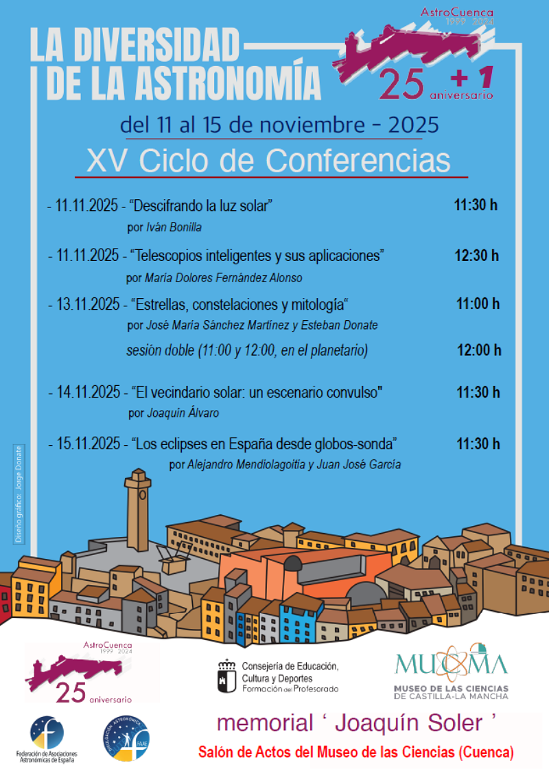 El XV Ciclo celebra más de 25 años de divulgación astronómica en Cuenca, homenajeando la trayectoria de Joaquín Soler, y cuenta con la colaboración de la Federación de Asociaciones Astronómicas de España y la Consejería de Educación, Cultura y Deportes.
