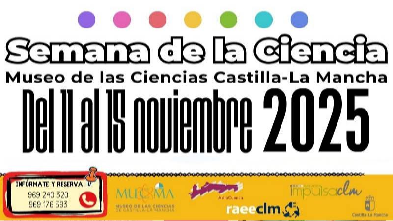 El Museo de las Ciencias de Castilla-La Mancha, en colaboración con la Asociación AstroCuenca, celebra del 11 al 15 de noviembre de 2025 la Semana de la Ciencia, incluyendo el XV Ciclo de Conferencias “La Diversidad de la Astronomía” – Memorial Joaquín Soler. La programación combina talleres didácticos gratuitos y conferencias astronómicas, pensadas para todos los públicos y edades.