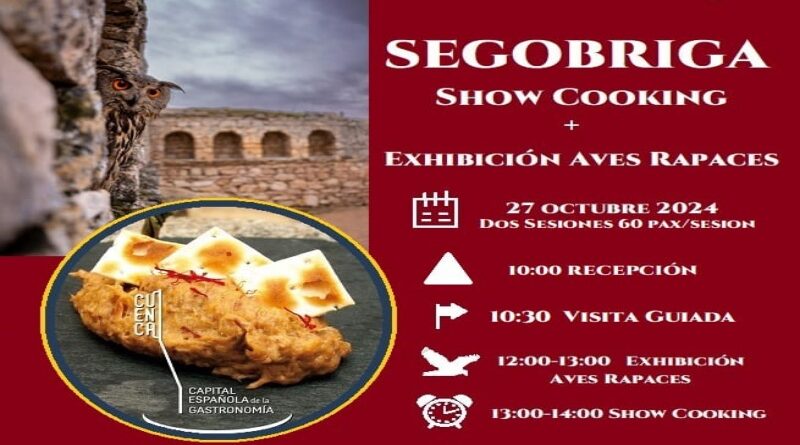 El próximo 27 de octubre de 2024, el Parque Arqueológico de Segóbriga será escenario de un evento único que combina la gastronomía y la naturaleza. Con aforo limitado a 60 personas por sesión, este evento ofrecerá a los asistentes una experiencia completa que incluye una visita guiada, una espectacular exhibición de aves rapaces, y un delicioso show cooking.