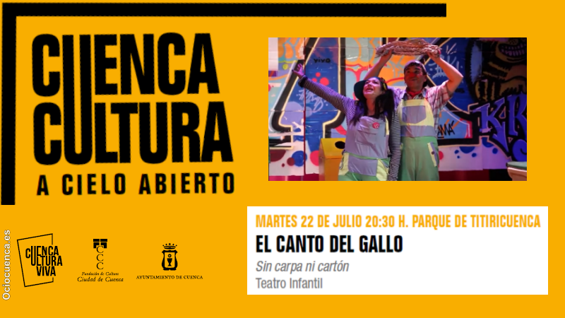 Dentro del ciclo Cuenca Cultura a Cielo Abierto, la compañía El Canto del Gallo nos invita a disfrutar de “Sin Carpa ni Cartón”, un espectáculo de teatro clown familiar que aúna el humor escénico con un hondo mensaje de educación ambiental.