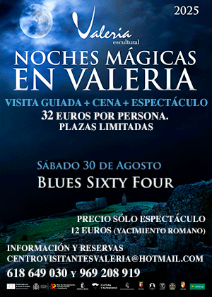 Este viernes 30 de agosto a las 23:00 horas, la Plaza Mayor de Valeria volverá a convertirse en un escenario incomparable con el concierto de Sixty Four Blues, una de las formaciones más sólidas del panorama conquense de rhythm & blues. La cita pone el broche de oro a la sexta edición de las Noches Mágicas de Valeria, ciclo cultural que desde el 19 de julio ha ofrecido siete veladas únicas donde la música en directo, la historia y la gastronomía se entrelazan en el antiguo foro romano.