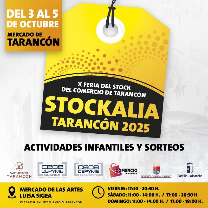 El escenario elegido vuelve a ser el Mercado de las Artes Luisa Sigea, en la Plaza del Ayuntamiento, nº 9, donde se darán cita once establecimientos de distintos subsectores. La Feria del Stock del Comercio de Tarancón está organizada por CEOE CEPYME Cuenca y CEOE CEPYME Tarancón, contando con la colaboración de la Asociación del Comercio, la Junta de Comunidades de Castilla-La Mancha y la Diputación Provincial.