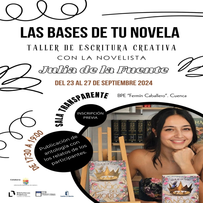 La Biblioteca Pública del Estado en Cuenca será el escenario del taller de escritura creativa impartido por la reconocida novelista local, Julia de la Fuente. Del 23 al 27 de septiembre de 2024, los asistentes podrán descubrir los fundamentos para escribir su propia novela en un entorno dinámico y colaborativo.
