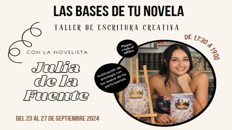 Si sueñas con escribir tu propia novela o quieres mejorar tus habilidades narrativas, esta es tu oportunidad de aprender directamente de una de las voces más prometedoras de la literatura actual. julia de la fuente.