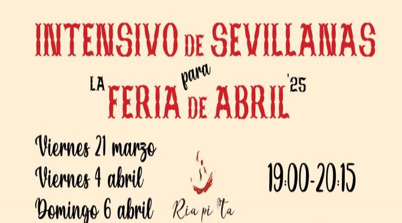 El Centro de Arte Riá Pi Ta, bajo la dirección de Virginia García, organiza un Taller Intensivo de Sevillanas para quienes deseen aprender o perfeccionar este baile tradicional de cara a la Feria de Abril 2025 o simplemente para ir calentando articulaciones.