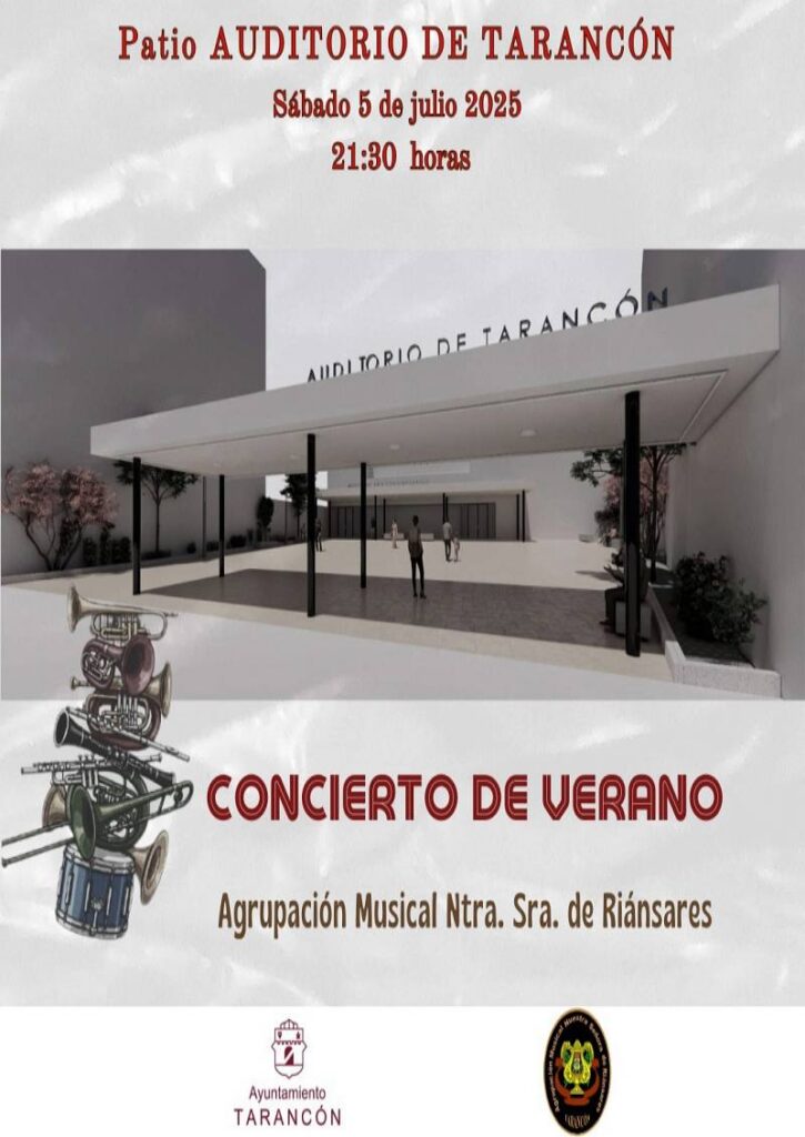 Tarancón da la bienvenida al verano con uno de sus eventos más emblemáticos: el Concierto de Verano de la Agrupación Musical Nuestra Señora de Riánsares, que tendrá lugar el próximo sábado 5 de julio de 2025, a las 21:30 horas, en el patio del Auditorio Municipal.