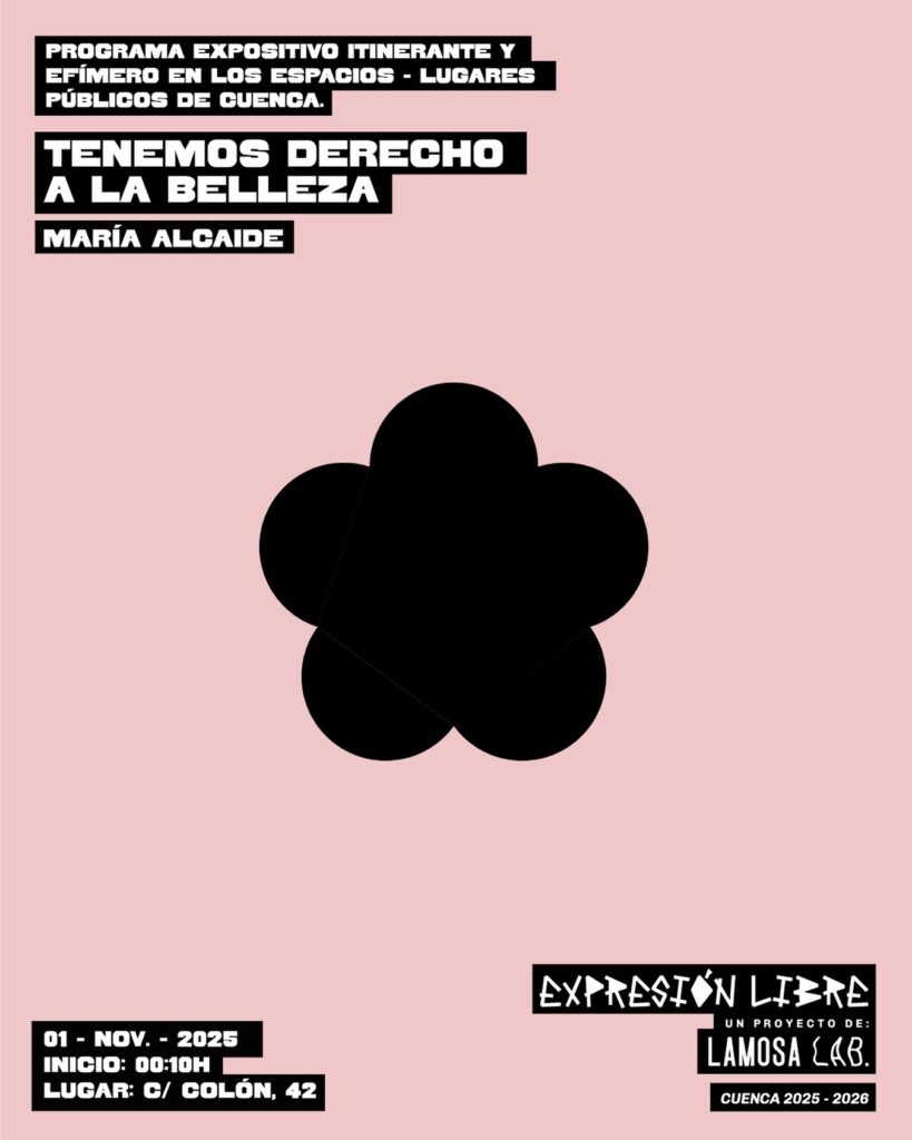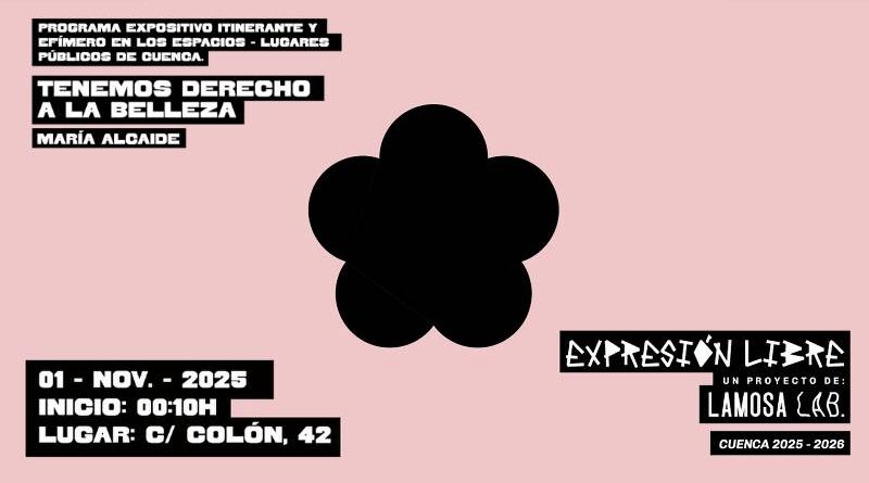 El programa expositivo urbano “Expresión Libre” continúa llenando las calles de Cuenca de arte contemporáneo con su séptima exposición, titulada “TENEMOS DERECHO A LA BELLEZA”, una propuesta de la artista María Alcaide comisariada por Lamosa, Laboratorio Artístico Modulable, y Mawatres.