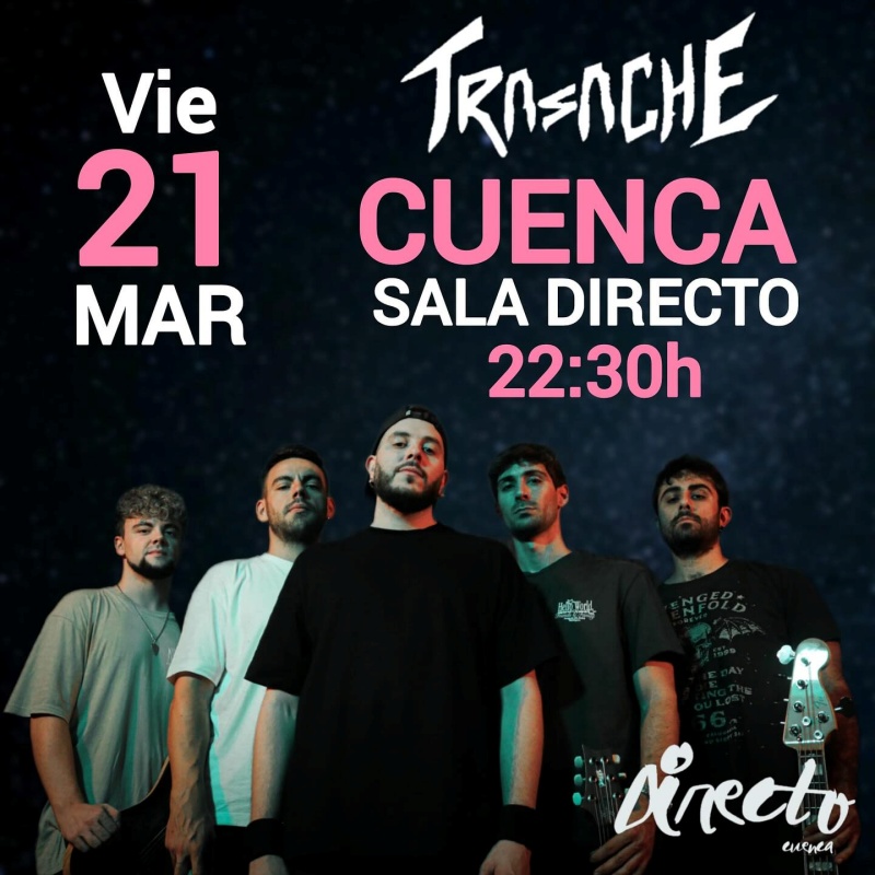 Con un sonido fresco y potente, Trasache se abre camino en la escena del rock nacional. No te pierdas su directo el 21 de marzo en la Sala Directo de Cuenca .