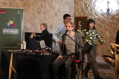 La jornada concluyó en el Palacio del Infante Don Juan Manuel con el concierto didáctico “Historia inventada de la música inventada”, a cargo de Neønymus, proyecto del músico Silverio Cavia, conocido artísticamente como Silberius de Ura, que propuso un recorrido sonoro basado en la experimentación vocal y el uso de instrumentos sencillos junto a tecnología de looping.