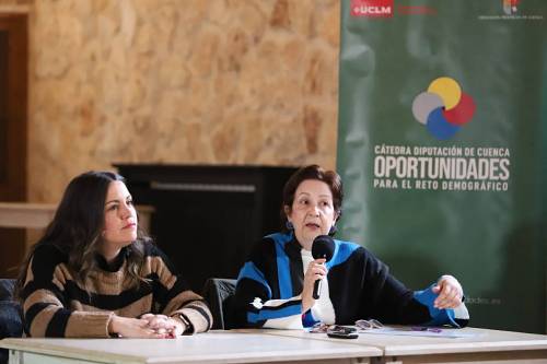 Tras este primer contacto, la actividad se trasladó a Belmonte, donde el Hotel Palacio del Infante Don Juan Manuel acogió el bloque académico de la jornada. El acto inaugural contó con la presencia de la alcaldesa de la localidad, Cristina Delgado Fernández, y de Carmen Vázquez Varela, directora de la Cátedra de Oportunidades frente al Reto Demográfico. También estuvo presente José María Herranz, director del seminario permanente Comunicación, Creatividad y Nuevas Ruralidades.