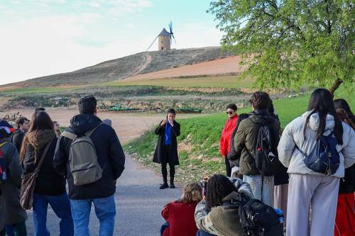El recorrido concluyó frente al cerro de San Cristóbal, junto a los molinos de viento, con la intervención por Natali Camolez. La coreografa y educadora social abordó la inclusión en el medio rural desde el lenguaje del cuerpo y el movimiento, con dinámicas orientadas a facilitar la participación en actividades culturales, resaltando la importancia de incorporar esta perspectiva a sus proyectos, considerando la accesibilidad como un elemento central en el diseño de sus propuestas.