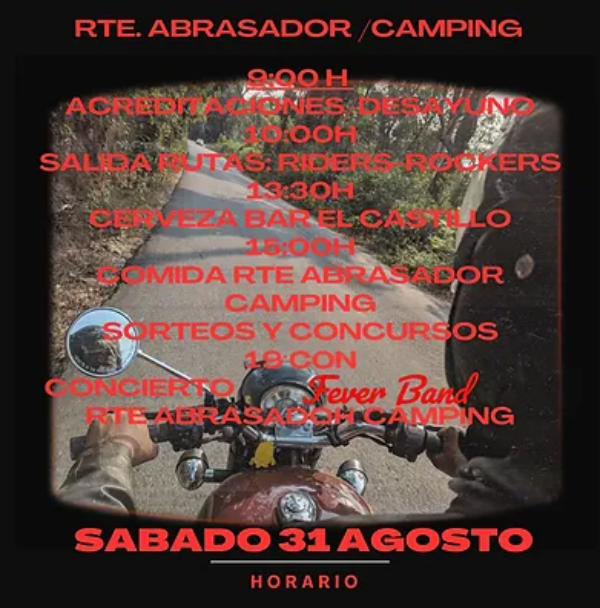 - 19:00h: La jornada culminará con un espectacular concierto en directo de la The Fever Band en el mismo lugar, ofreciendo un cierre a puro rock y camaradería.