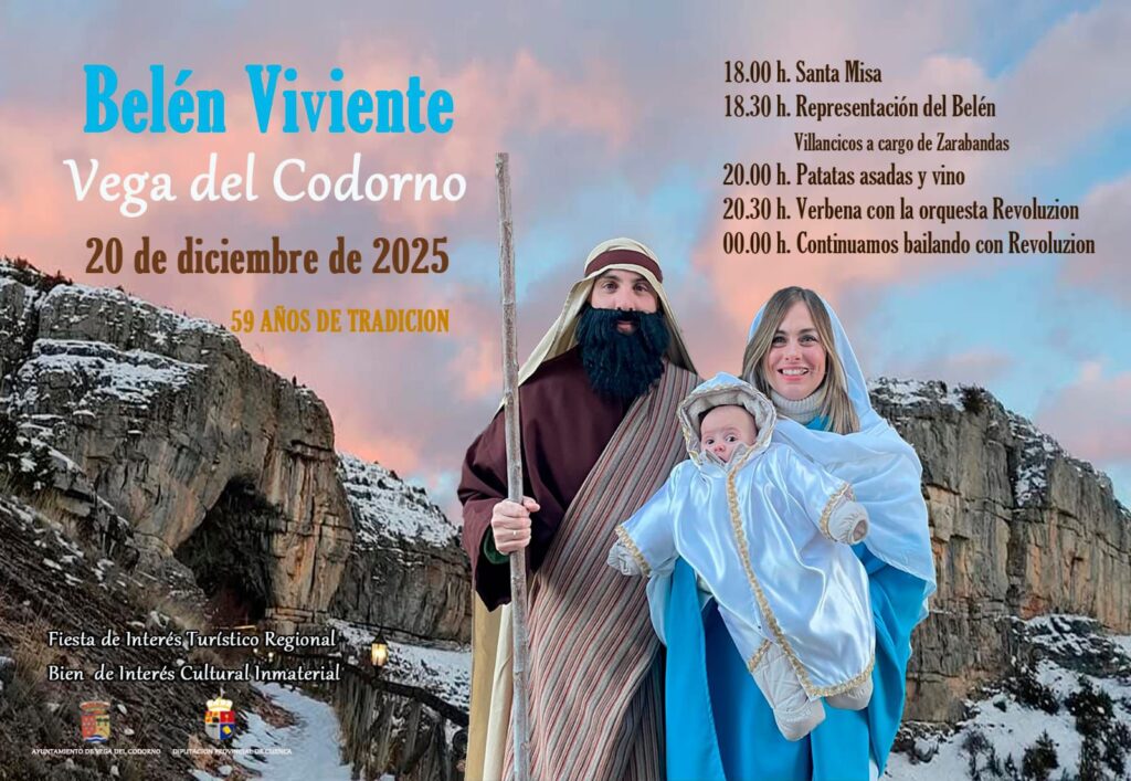 Vega del Codorno se prepara para acoger una de sus celebraciones más emblemáticas: el Belén Viviente, que en 2025 alcanza su 59 edición. La celebración tendrá lugar el 20 de diciembre, el sábado anterior al día 24 del mismo mes en la ya conocida como Cueva del Nacimiento de la localidad conquense. Un acontecimiento con más de medio siglo de historia que reúne a vecinos, visitantes y a muchos hijos del pueblo que regresan expresamente para participar en esta representación colectiva.
