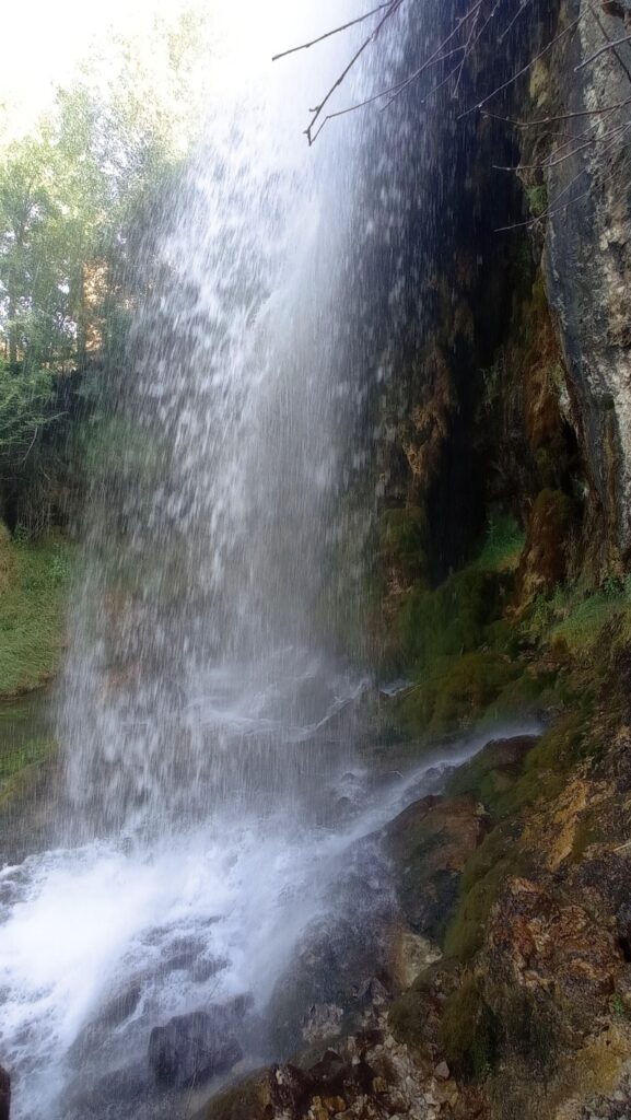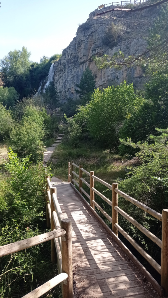 Siguiendo las indicaciones, tomaremos la senda de maderas, escalones y quitamiedos; nos abriremos paso a través de la densa vegetación hasta la estruendosa cascada donde el Júcar vuela en un lienzo pictórico firmado por nuestra madre, sí, madre naturaleza.