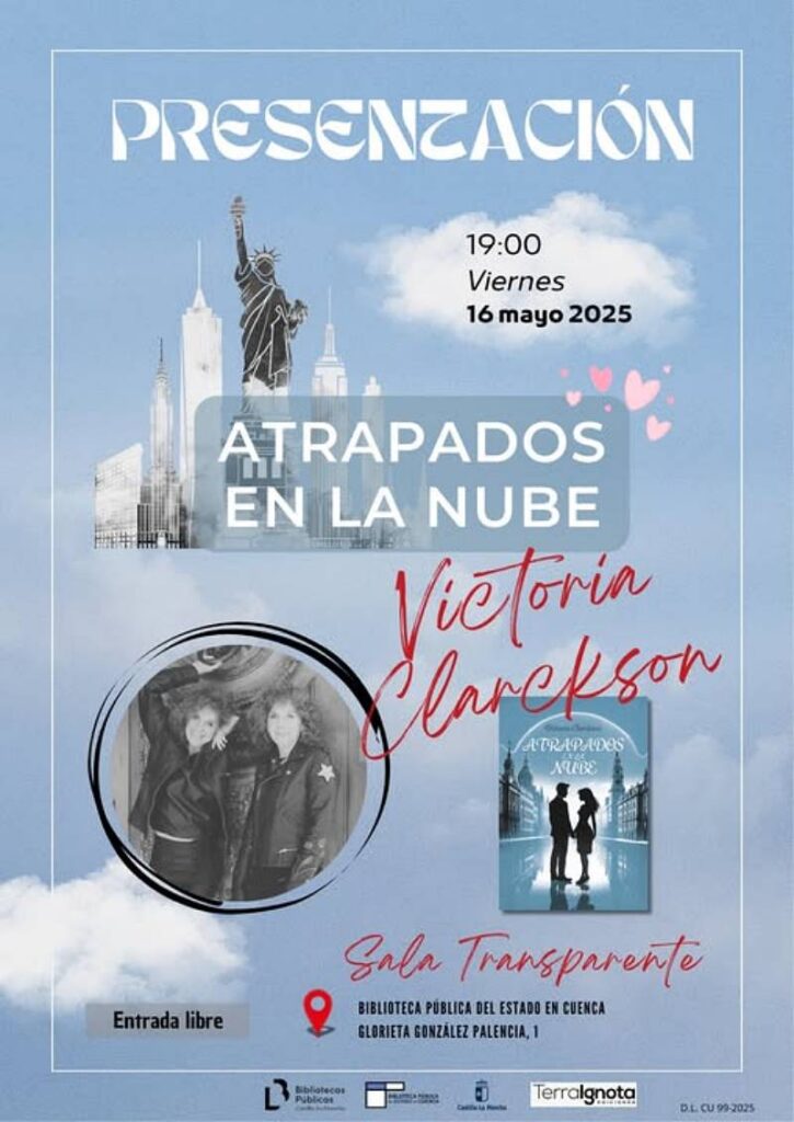 La autora Victoria Clarckson aterriza en Cuenca para presentar su última novela, Atrapados en la nube, una historia de amor contemporáneo que explora las relaciones a distancia en un mundo hiperconectado. La cita tendrá lugar el próximo viernes 16 de mayo a las 19:00 h en la Sala Transparente de la Biblioteca Pública del Estado en Cuenca ‘Fermín Caballero’, con entrada libre hasta completar aforo.