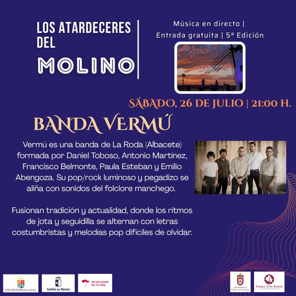 La V Edición de Los Atardeceres del Molino promete consolidarse como uno de los acontecimientos musicales más sugerentes del verano en la provincia de Cuenca, uniendo arte, paisaje y comunidad.