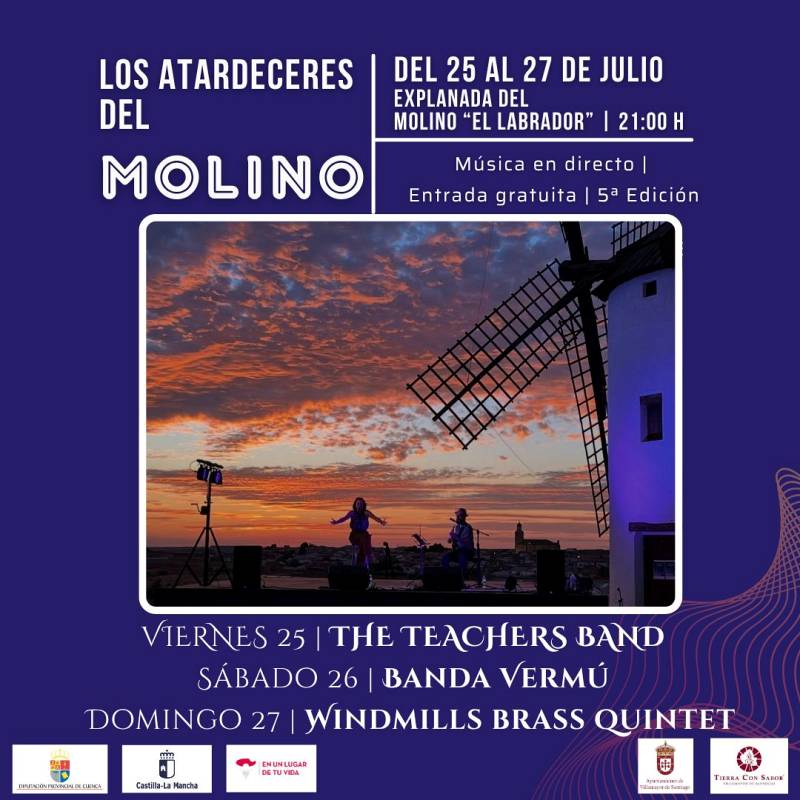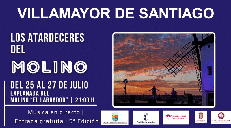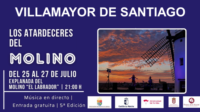 Villamayor de Santiago vuelve a apostar por la música en vivo en un entorno incomparable con la celebración de la V Edición de Los Atardeceres del Molino, un ciclo de conciertos que tendrá lugar este fin de semana, los días 25, 26 y 27 de julio, al abrigo del emblemático molino “El Labrador”.