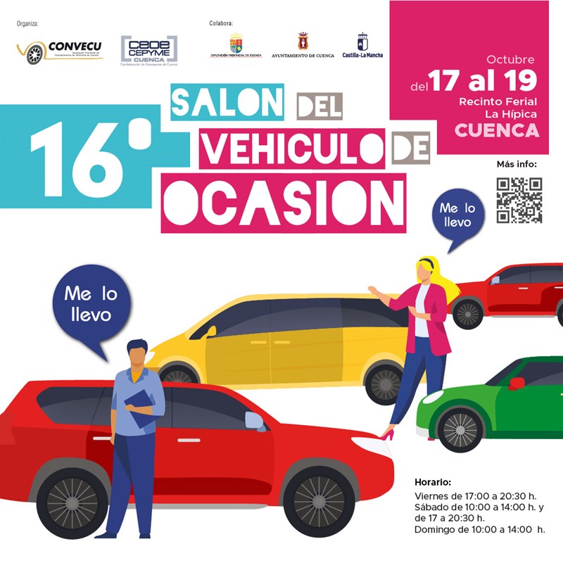 La organización del Salón del Vehículo de Ocasión vuelve a recaer en CONVECU y CEOE CEPYME Cuenca que cuentan con el apoyo de la Diputación Provincial, Ayuntamiento de Cuenca, Junta de Comunidades de Castilla-La Mancha y BBVA Consumer Finance.