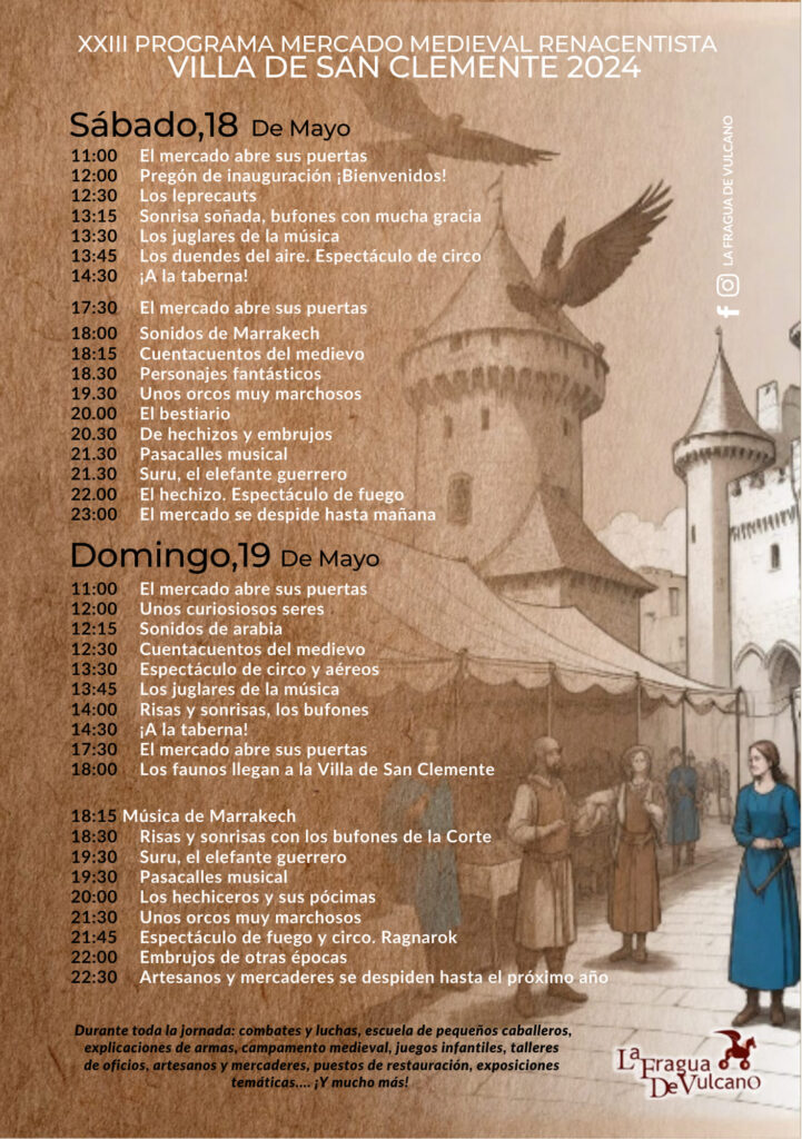 Este fin de semana vísperas al Día de Rus, San Clemente retrocede en el tiempo y el casco antiguo de la localidad se tiñe de época para adentrarse en la época del medievo con múltiples actividades para todas las edades, decenas de puestos artesanales, actividades benéficas, atracciones, combates, luchas,… y mucho más que no te podrás perder.
